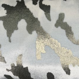 This fabric blends contemporary artistry with a luxurious finish, featuring an abstract pattern highlighted by metallic accents. The contrast between matte and reflective textures creates depth and movement, making it a striking choice for refined interiors. Ideal for upholstery, statement seating, and accent pillows, it balances modern edge with timeless sophistication.