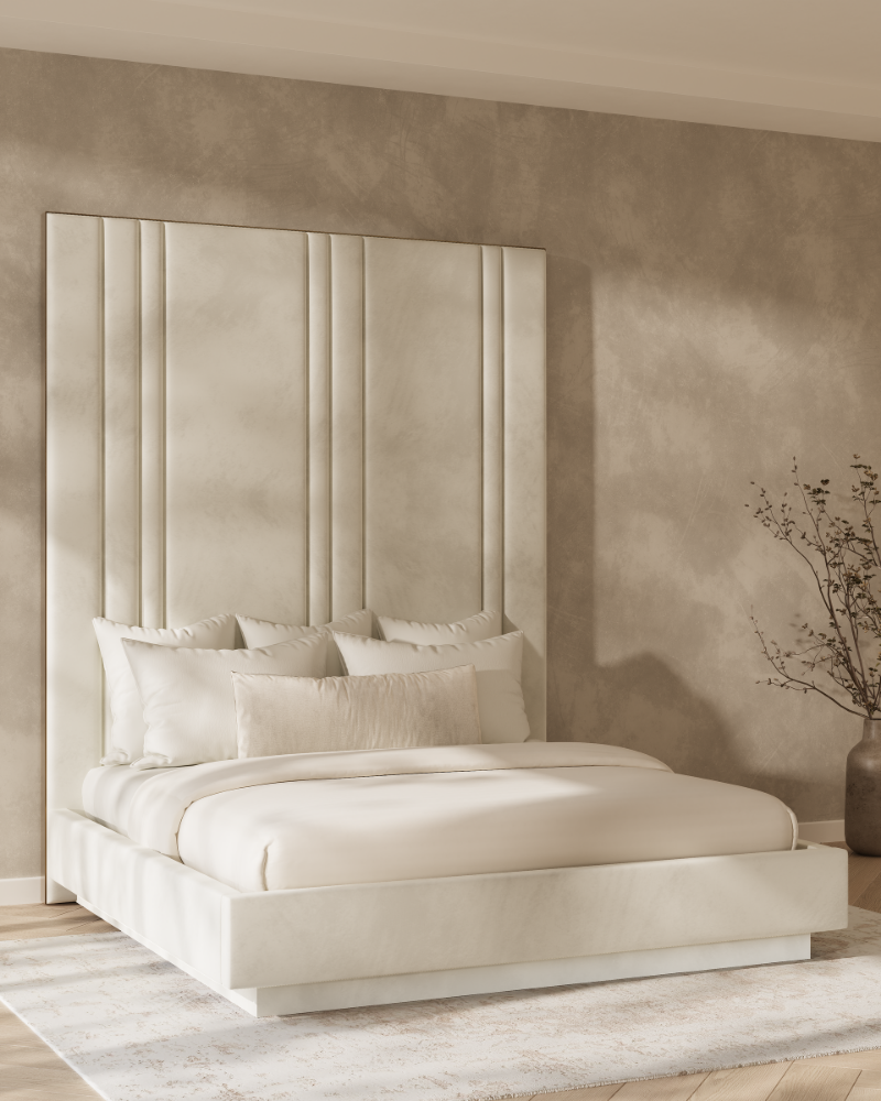 The Nap Trap bed owns its name with height and presence. The tall headboard features subtle vertical seams that draw the eye upward, giving it a calm, architectural rhythm. Defined by balance and precision, the Nap Tower bed celebrates the beauty of structure. Simple yet impactful, it stands proudly — a modern tower for the perfect nap.