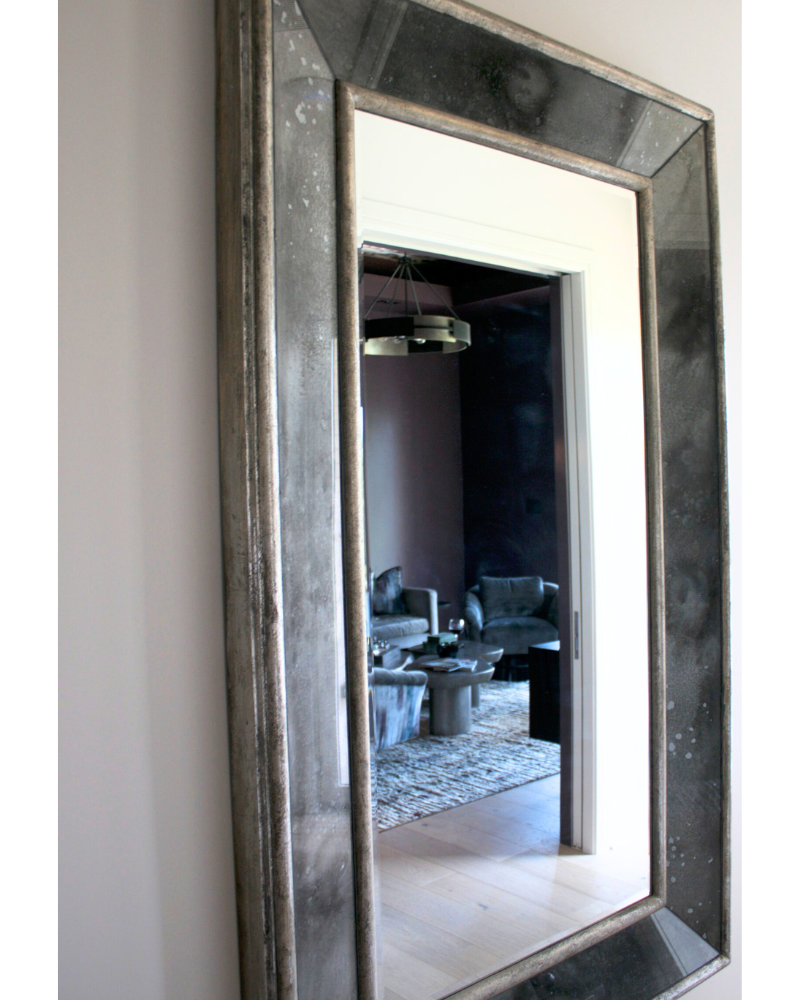 The Vltava Mirror is a stately and substantial statement piece, designed to add dramatic elegance to any interior. Framed with a distressed aged black solid pine structure, its refined character is further enhanced by antiqued side panels and a beveled center mirror. The generous 1 1/4" bevel adds depth and luxury, while its versatile design allows it to be hung either vertically or horizontally to suit your space. Whether placed in an entryway, living room, or bedroom, this mirror commands attention while offering timeless style.