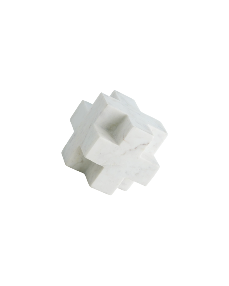 This marble jack sculpture adds a refined sculptural touch to any space. Crafted from smooth white marble with subtle veining, its geometric form brings both structure and sophistication to your décor.