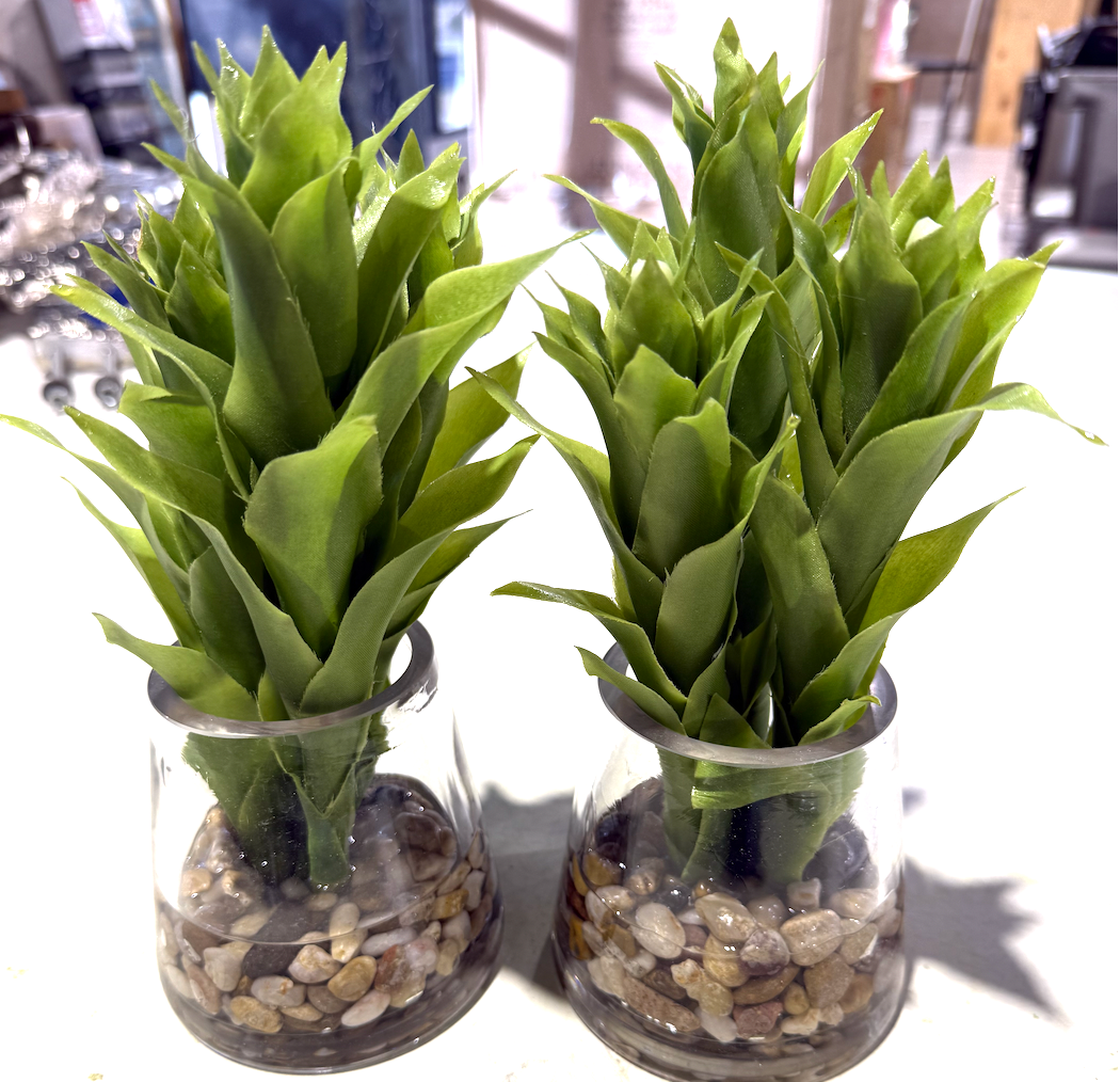 Glass Vase Floral with rock and succulents
